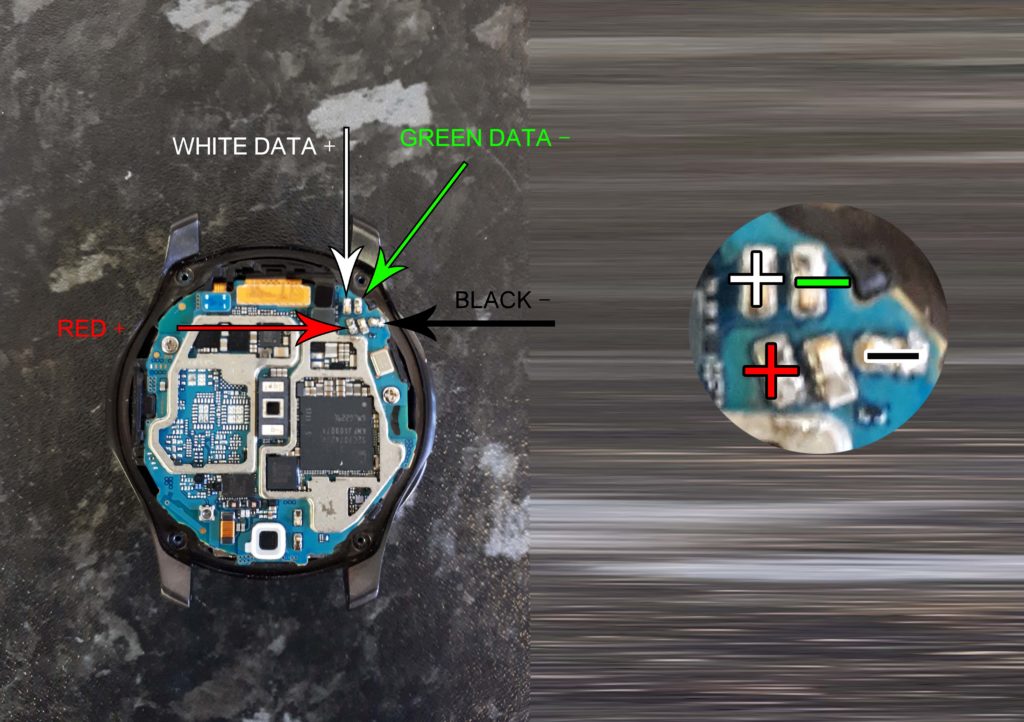 As a last resort I found a pin out diagram, took the watch apart and connected (soldered) a usb cable to these points, and it charged and works. Wireless charging also works as long as there is some charge in the watch.
